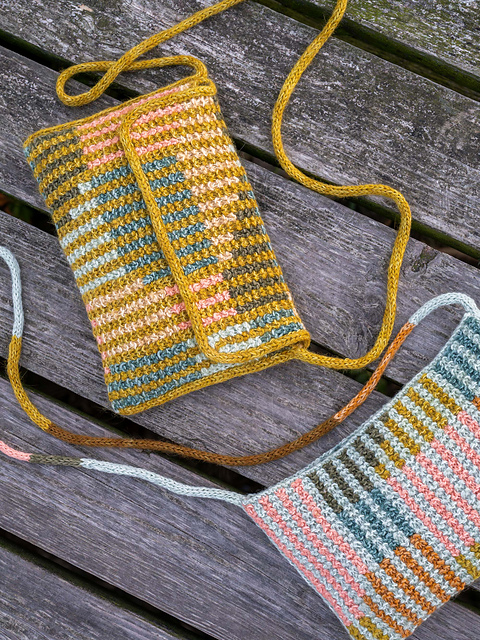 **Needles:** 3.75mm (US 5) circular needles for the bag body and 2.5mm (US 1.5) circular needles for the (I-cord) cast-off and strap.