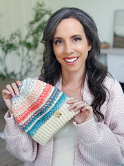 You’ll start with a soft, stretchy ribbed brim worked flat in rows, then join and transition seamlessly into ***[my signature wheat stitch][1]*** for the body of the hat. For extra impact, switch colors every two rounds to create eye-catching stripes — or keep it classic with a solid color. Simple decreases shape the crown, and the beanie is topped with a playful pompom (and optional tag for that personal maker’s touch).