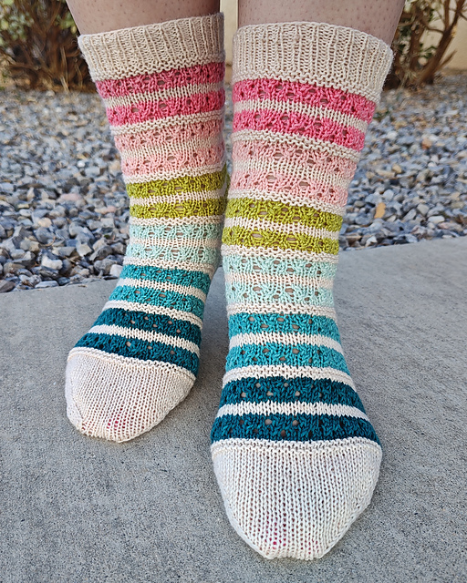 I suppose that’s appropriate for a pattern called “Lacing Stripes.” I knit the pattern before I came up with a name, and when I realized the stripes were in sets of two, like racing stripes, how could I pass up the pun?