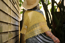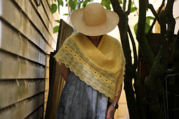 As light, as light as can be, the Splash of Sunshine shawl echoes two motifs from the [Funston shawl][1], my 2025 mystery.