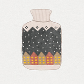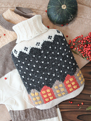Even though I live somewhere it rarely snows, I’ve always dreamed of a quiet, storybook town where snow falls on winter nights. That’s what inspired this piece. Whenever I hold this hot water bottle in its hand-knit cover, it gives me a gentle, comforting sense of warmth and emotional support.
