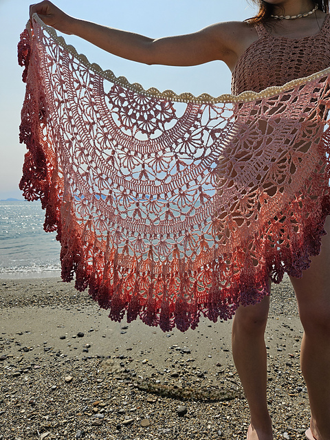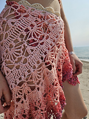 Hibiscus skirt is everything you need for this Summer. It works out great as a cover-up, but looks amazing over skirts or shorts. The skirt can be tied so the front is shorter and the back longer, or you can have one side shorter and the other longer. This skirt may be worn as a scarf or poncho as well. You can make it mini or midi length. There are instructions for sizes XS- XXL. Besides that you could easily do smaller sizes, bigger sizes can be made as well, but the skirt may be shorter, or may be worn only as a cover-up.
