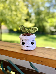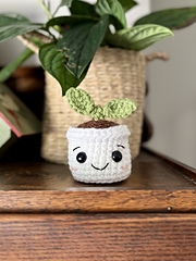 My plant buddy patterns have been super fun to design. One day, I thought, let's throw in the tiniest plant pal, the Mini Sprout Buddy! This no-sew crochet pattern is a breeze! Great for market prepping, impromptu gifts, and stitching in your spare time. This little friend is absolutely adorable and even fits in the palm of my hand!
