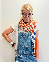 Starting with a garter tab cast on, stitches are increased every RS row at both edges and at the center of the shawl. Color changes are worked every 4 rows. The cute and easy dip stitch pattern could be worked with many colors for a playful result (and to help stash busting ;) or with 3 colors (as shown) for a more sophisticated and sportive look.