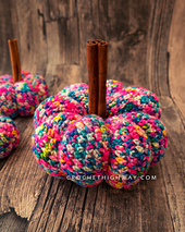 With its simple yet beautifully textured stitch and straight-forward construction, this pattern is your invitation to go wild and pick the craziest colors from your stash! Do you have any yarn leftover from a sweater that's too gorgeous to toss, but not enough yardage to make anything out of? This pumpkin is the perfect in-between project that will finally put your precious leftover yarn to great use! Go bold with variegated yarns, keep it classic with solids, or mix and match multiple yarns in one pumpkin. The possibilities are truly endless!