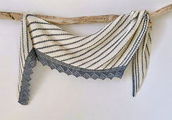 ENNISKILLEN is a triangular shawl worked sideways. You start by casting on a few stitches at the tip and then knit across to the opposite edge, increasing at the top edge to form the asymmetrical triangular shape. The shawl features a reversible fabric with relaxing garter stitch and delicate eyelet rows. The lace edging is created along one side as you knit.