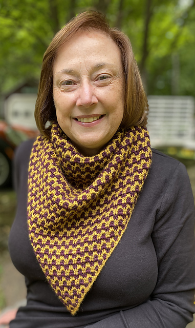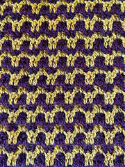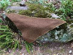 Exogamy: Marriage outside of one’s clan. This crocheted shawl interweaves two colors representing the joining of two clans, the MacKenzies and maybe the Grants, but hopefully the Frasers. Each row is worked twice, once in one color then in the other. All chain floats on a row are concealed when working the following row, making the shawl completely reversible. Created with fingering weight yarn, as pictured Kelbourne Woolens Camper (50g/200yds/183m), requiring two skeins of each color (as pictured Sunflower Heather and Mulberry Heather).