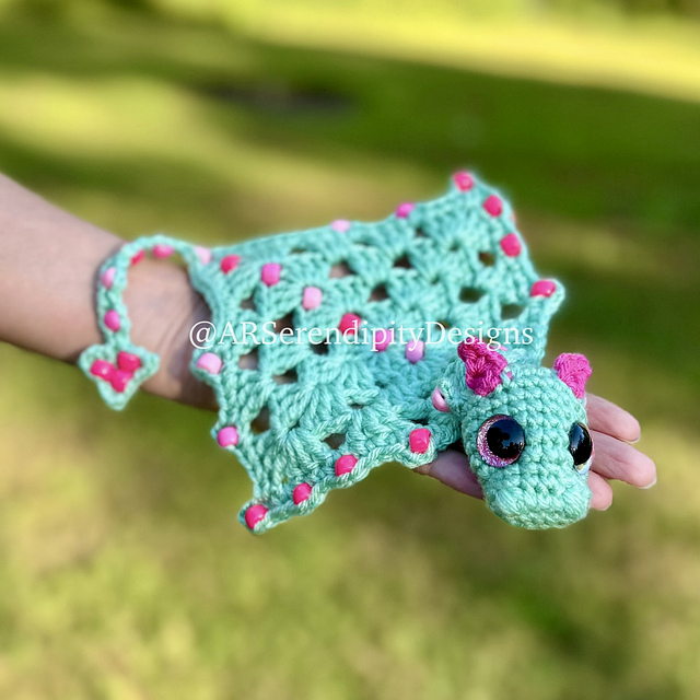 1. The Large Beaded/Fidget Pocket Dragon Pattern with materials, abbreviations, video links, photos and pattern instructions. Choose from a full-photo tutorial, text-only, abbreviated pattern for repeat use (use the table of contents for quick access), or a FULL VIDEO TUTORIAL (best used alongside the written pattern).