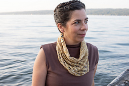 Start with just a few stitches and let your needles get comfortable creating a linear lace mesh. Once you have increased you’ll work an asymmetrical section, and then decrease back down. Finally, you’ll graft your cowl together with a magical decorative lace join!