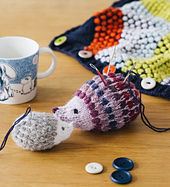 And by changing the weight of yarn, you can achieve your preferred size, from a tiny egg-size to a large cushion size hedgehog. The bobble-like popcorn stitch used on the body combines two rows with three strands and two rows with a single strand and their alternation creates this interesting textured pattern.