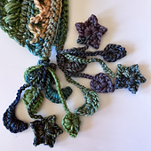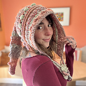 Step into a storybook world with the Fable Pixie Hood, a dreamy, fantasy-inspired crochet pattern designed for lovers of whimsy and wonder! It has a pointed pixie shape with lots of fun textured stitches throughout. it has little star, moon, and leaf tassels to bring an ethereal touch to any outfit. It works up great with self striping yarn for effortless colorwork. The Fable Pixie Hood is perfect for Renaissance Fairs, festivals, costumes, or just adding a bit of magic to everyday life! Please note that the hood pattern is the same as on the Fable Cloak, just with a different hook size + the tassels