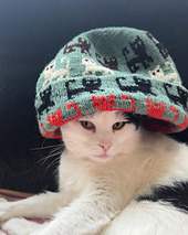 Herding Cats Hat is a fun to knit hat that can be worked in any two contrasting colours of your choice. Or it can be worked in multiple colours as shown in this version, to show your love for multiple cats. This is a pattern for a cozy and warm beanie with a long folded brim that will help keep your ears warm on cold days. It features the iconic stranded knitting Herding Cat motifs.