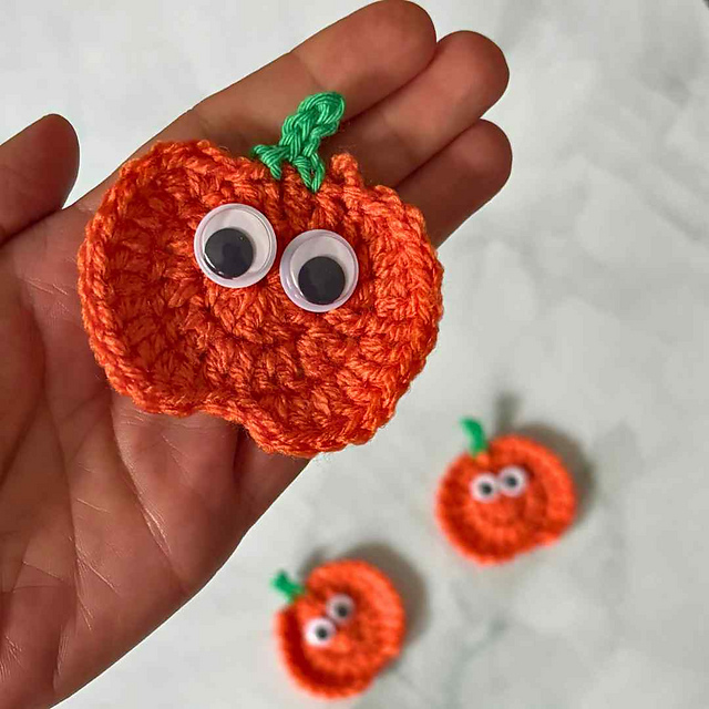 This easy pumpkin crochet applique pattern is perfect for beginners and works up in just a few minutes!