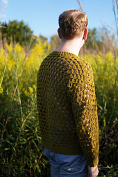 Sweater is knit top town. Back right and left shoulders are knit separately, flat, with minimal neckline shaping, center back stitches are cast on joining the back left and right, back is knit flat to underarm. Front left and right shoulder stitches are picked up and knit along back shoulder cast ons, separately, and knit flat. After completing neckline shaping center front stitches are cast on joining front left and right, front is knit flat to the underarm. Front and back are joined in the round and remainder of body is knit in the round, hem is finished with 1x1 ribbing. Stitches for the collar are picked up and knit in the round. Stitches for the sleeves are pick up and knit in the round. Sleeves are knit with shaping for a subtle taper.