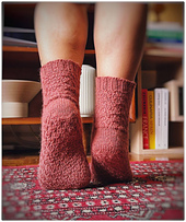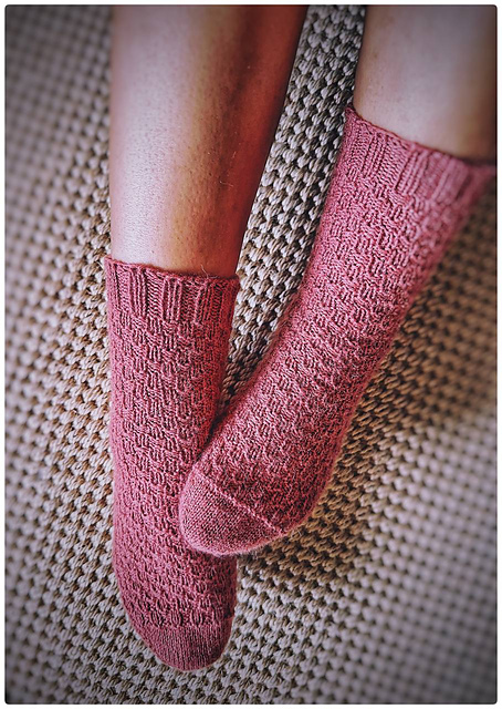 Mazatlán socks are knitted from the rounded toe up to the cuff; after knitting the toe, you begin working a texture that remembers the cobblestones of the historic center’s streets in this beautiful city, extending along the entire sock and giving it a harmonious and funny touch.
