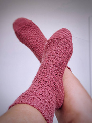 US 1 (2’25 mm) circular needles, either 80 cm long if you use the magic loop method, or DPNs or mini circular needles (23 cm). If you use short circular needles you will still need a long circular needle for casting on and the toe increases until you have enough stitches to work on a shorter needle. You can use another needle size to obtain gauge.