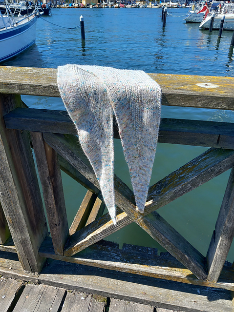 Ein nicht zu langes Schaltuch, das weich ist und mal nicht der üblichen Dreiecks- oder Rechtecksform folgt, aber trotzdem nicht zu schwierig zu stricken ist - das war mein Gedanke bei diesem Muster.
