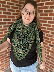 Finished size - approximate dimensions after aggressive blocking: Bandana: 34” wide, 11” deep; Shawlette: 58” wide, 19” deep; Shawl: 67” wide, 29” deep