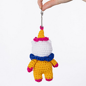 This crochet cat clown charm is ready for the big top or to hang off your bag strap! Stitched in Red Heart Super Saver Super Craft Kit, the pattern is worked in pieces and then seamed together. A great small project for practicing a variety of techniques, this kitty is made mostly of single crochet and basic increases and decreases, while the big neck ruffle is worked in double crochet. Safety eyes and face paint give this feline a spotlight-ready look. Play around with color choices to create a cat that adds personality to your world.