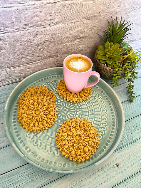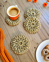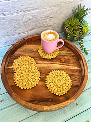 With their pretty, bohemian, textured sunrays these crochet coasters will be an attractive and happy addition to any living room décor.