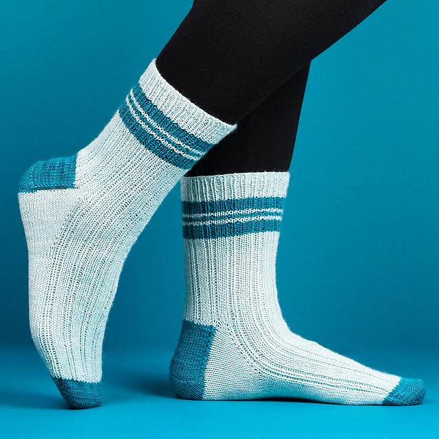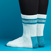 Students attending Shiz University are proud to sport unique and iconic uniforms. Inspired by those looks, these toe-up socks are designed to complete the back-to-school ensemble. Ribbing of varying widths coordinates with the varying width of the fabric stripes. A contrast color is used to create the toe, heel, and ‘school spirit’ stripes around the leg of the sock. Easy to knit and easier to wear, these are the perfect socks to mix and match colors that will showcase your School (or team) Spirit!