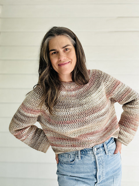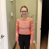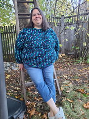 Sweater worked in one pieces from the top down: Yoke (Rounds), Torso (Rounds) Sleeves (Rounds), Yoke Border (Rounds).
