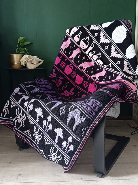 Make your own beautiful blanket with this Witchcraft mosaic crochet pattern. It's perfect for lovers of spooky and witchy things and for Halloween.