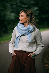 My hope for this project is to spark your creativity and sense of adventure! Don’t be afraid to play with different yarn weights, adjust the size, and use up your stash. Try different yarn textures, holding multiple strands together, or using handspun for a truly personal touch. The rhythmic stitch pattern offers a soothing flow, while the simple construction and adaptable sizing means you can use what you’ve got. This is definitely a pattern to knit again and again! This shawl is a shallow triangle, knit sideways using Half-Fishermen's Rib. Do you love this stitch? Check out my other patterns: [Birch Pullover][2] (which I'm wearing with my Jaunty), [Stria Cardigan][3], [Stria Hat][4], [Inclinations Shawl][5], and [Inclinations Cowl][6]!
