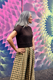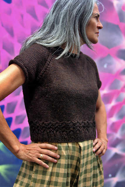 The sleeves are short and rounded out just the slightest bit. Length is cropped so the ribbed hem sits perfectly above the hips. And all of this is easily modified if desired.