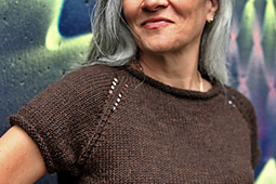 I couldn't resist adding something to take advantage of the stitch definition. Lace and ribbing at the hem make the tee a bit more interesting, with an easy, bold motif before binding off.
