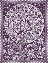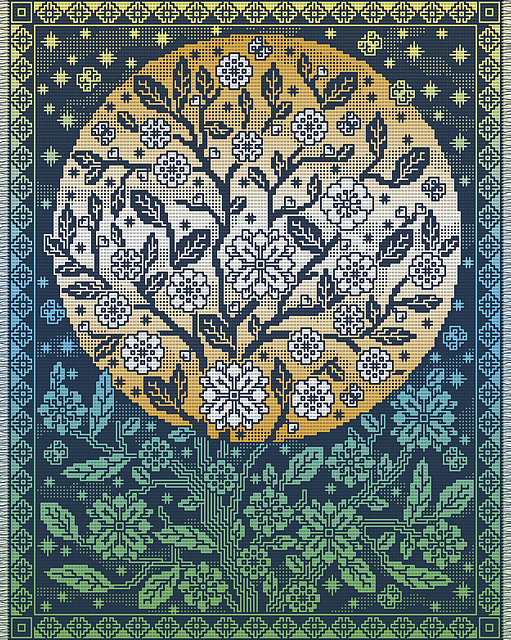 Two techniques: **overlay mosaic** and **interlocking filet** crochet. **Rectangular** or **square**, worked either **in the round** from the center or **bottom-up**. Either just the main panel with envelope border in the round (for interlocking crochet – border in the round), or the full width as you go.