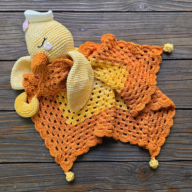 FINISHED SIZE: each lovey blanket is 30cm x 30cm (12"x 12"), with an amigurumi head and arms attached to one corner.