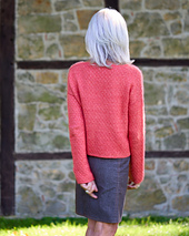 **Épuré** stands for clarity and sophistication. Épuré is a minimalist design, a sweater with generous ease and narrow sleeves that contrast beautifully with the straight cut and balance the silhouette. The easy-to-knit slip stitch pattern adds structure and requires just enough attention during knitting to keep things interesting. The V-neck, a fine line at the back shoulder, and the precise joining of the front pieces give the model a calm elegance. Épuré is suitable for both casual everyday looks and dressed-up outfits.