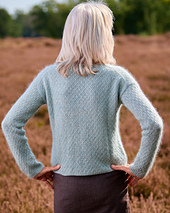 CONSTRUCTION: Épuré is knitted seamlessly from top to down. After the back has been worked up to the underarms, the stitches for the fronts are picked up from the shoulder edges and these are also worked up to the underarms. After joining front and back, the body is worked in rounds down to the hem. Stitches are picked up from the armholes and the sleeves are knitted in rounds to the desired length.