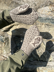Yarn: The samples are knitted in Jamieson's Shetland Spindrift. The brown (MC) is 107 Mogit and the white (CC) is 105 Eesit.
