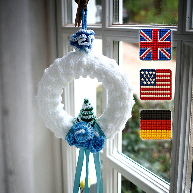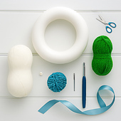 • Green DK yarn for the tree motif and light-blue DK yarn for accents