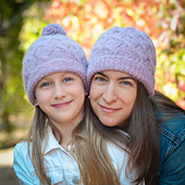 Prototypes are sizes Child and Adult S/M. The adult hat is worn with 2" (5 cm) of negative ease; the child hat with 3" (8 cm).