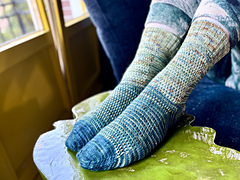 *Choose three colors of fingering weight sock yarn and fade them together for these beginner friendly socks. This pattern is knit top-down with slip stitches and garter stitch on the leg. The instructions include notes to help you fade three colorways together, but feel free to use as many shades as you like. Video links are included to help you cast on, work the heel flap, and bind off with grafting the toe stitches. Enjoy this simple relaxing sock project as your beautiful hand-dyed colors shine!*