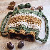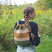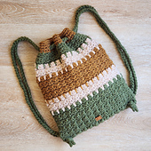 The Acorn Trail Backpack is a stylish string bag that shows off rich bands of color! The roomy bag is crocheted with size 5, bulky weight yarn, and the wide stripes are set off by eye-catching spike stitches. The chain stitch drawstrings become the shoulder straps when the bag is cinched. This is an easy level project.
