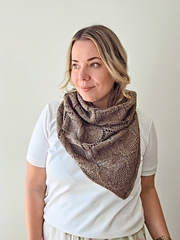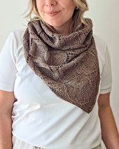 The cowl is knitted flat on the bias, beginning at the corner of the back neck and increasing gradually to full width. The lace motif is fully charted to flow seamlessly with the shaping. The edges are worked in a slipped-stitch technique that mimics the look of i-cord edging, and the small seam at the back neck is finished with an invisible mattress stitch.