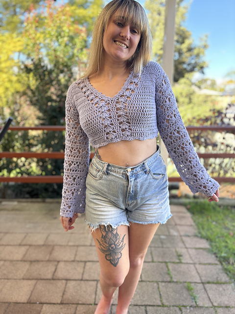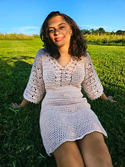 I used roughly 700m of yarn foe the sample size top (UK 8) and 1200mm for the sample size dress (UK 8).