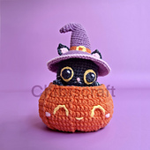 Peek-a-boo Pumpkin Cat Amigurumi: Written crochet instructions on 10 pages in English using American terminology with a lot of step-by-step photos.