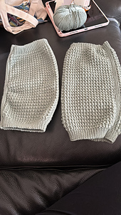 The leg warmers / yoga socks are worked flat in rows that are turned at the end, and then seamed in one piece. It’s made up of 2 ‘panels’, a top and bottom section, that are worked continually. And the bottom section breaks to create the foot strap.