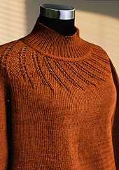 The starburst motif is far easier than it appears, and the hybrid yoke construction gives you the best of both worlds: a circular yoke for effortless textured, lace knitting that transitions into raglan shaping for a comfortable, flattering fit.
