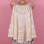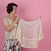 This delicate crochet shawl combines silk, mohair, and a hint of sparkle from sequins. Light and airy, it features an open lace pattern that drapes beautifully. The subtle shimmer of the sequins catches the light, evoking the soft glimmer of fresh snow in the sun. Perfect for winter festivities or elegant holiday gatherings - a rewarding project for experienced hands.