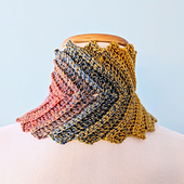Scarf shown measures 8.25"/21cm across at the widest point, and 5”/12.5cm across at the narrowest point. Sample scarf measures approximately 34.5”/96.5cm long (not including 8” fringe) after blocking, but can be made any length you’d like.