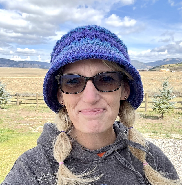 This is designed to be a loose fitting bucket hat, made from a bulky weight yarn. For a more fitted version, use a worsted weight yarn. The samples are teen/adult size.