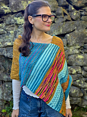 This was designed as a Seamed wrap for Miss Babs' 20th Anniversary Retreat in August. Happy Anniversary, Babs and Team!! Use 4 contrasting yarns and feel free to mix them around at will. Expect to use most of your yarn.