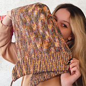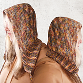 The Caramel Hood pattern walks you through a shaped hood, a ribbed collar with a hidden drawstring channel, with a neat **join-as-you-go** finish.