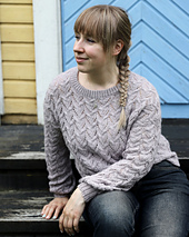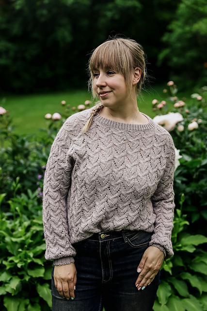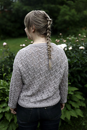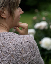 Frozen Dreams is a dreamy, romantic pullover with an all-over lace pattern. The sweater is worked seamlessly top-down and features European shoulder construction where all shoulder shaping is done without short rows and the shoulder seam sits at the back. The sleeves are worked in the round without any decreases until just before the cuff ribbing. The cuff and hem ribbing are finished with Italian bind-off and the neckline ribbing is folded and bound off sewing the stitches onto the WS. The lace pattern comes with both charted and written instructions.